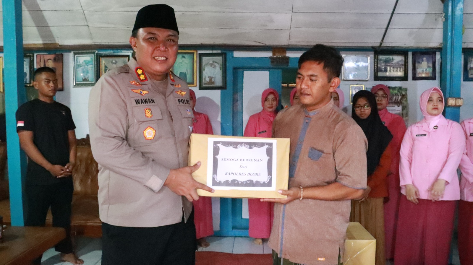 Bantuan tersebut diserahkan langsung oleh Kapolres di kediaman orang tua Bripka Wahyu, di wilayah sama, didampingi oleh Para Pejabat Utama (PJU) Polres Blora.