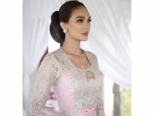 Luna Maya terlihat manglingi saat siraman pada Selasa (6/5) mengenakan kain jumputan pink dengan teknik draping langsung di tubuh calon pengantin. Kain jumputan melambangkan kesucian, harapan dan kesuburan ini menjadi sangat personal dan tak terulang. Warna coral pink menghadirkan nuansa hangat tenang dan romantis dibalut dengan kebaya klasik kutubaru handmade dengan frenchlace.