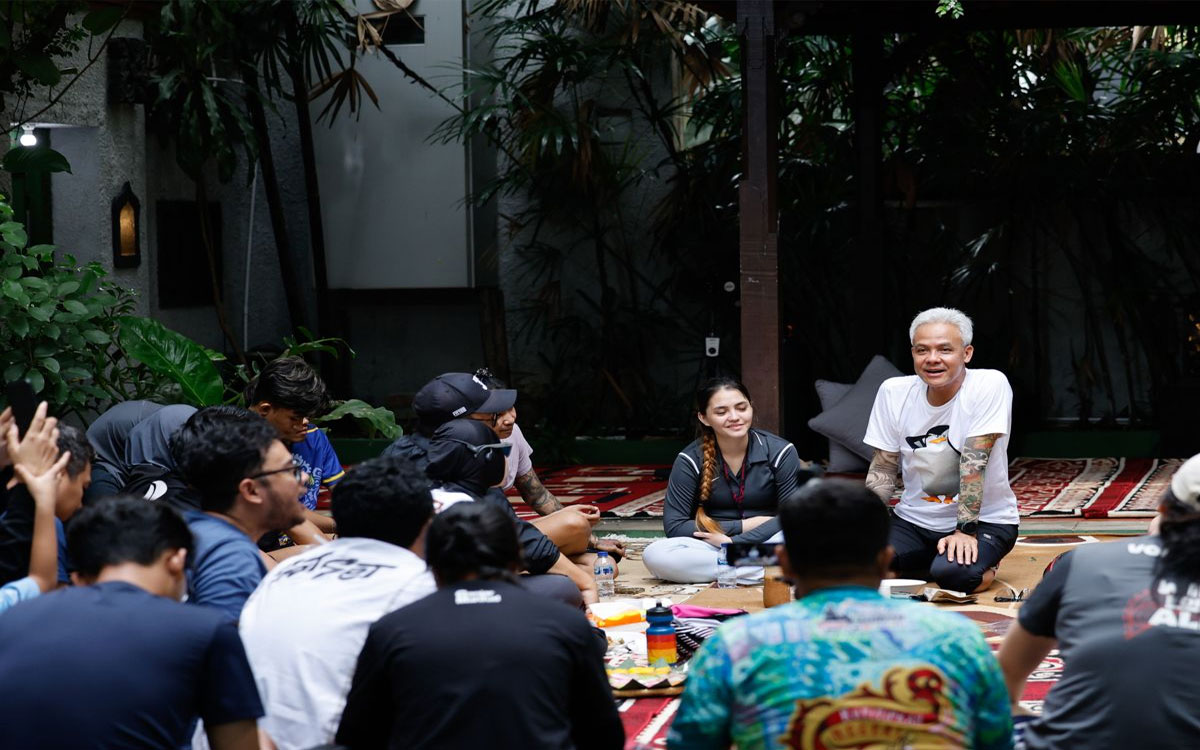 Ceritanya, Ganjar bersama istri, Siti Atikoh ngobrol asik bersama para milenial di Jalan Brawijaya, Kebayoran Baru, Jakarta Selatan, Senin (8/1). Ayu Diva dan Alfia Putri mengeluhkan hingga saat ini ijazahnya masih ditahan pihak sekolahan. Padahal, ijazah itu penting untuk dirinya ingin melanjutkan sekolah.
