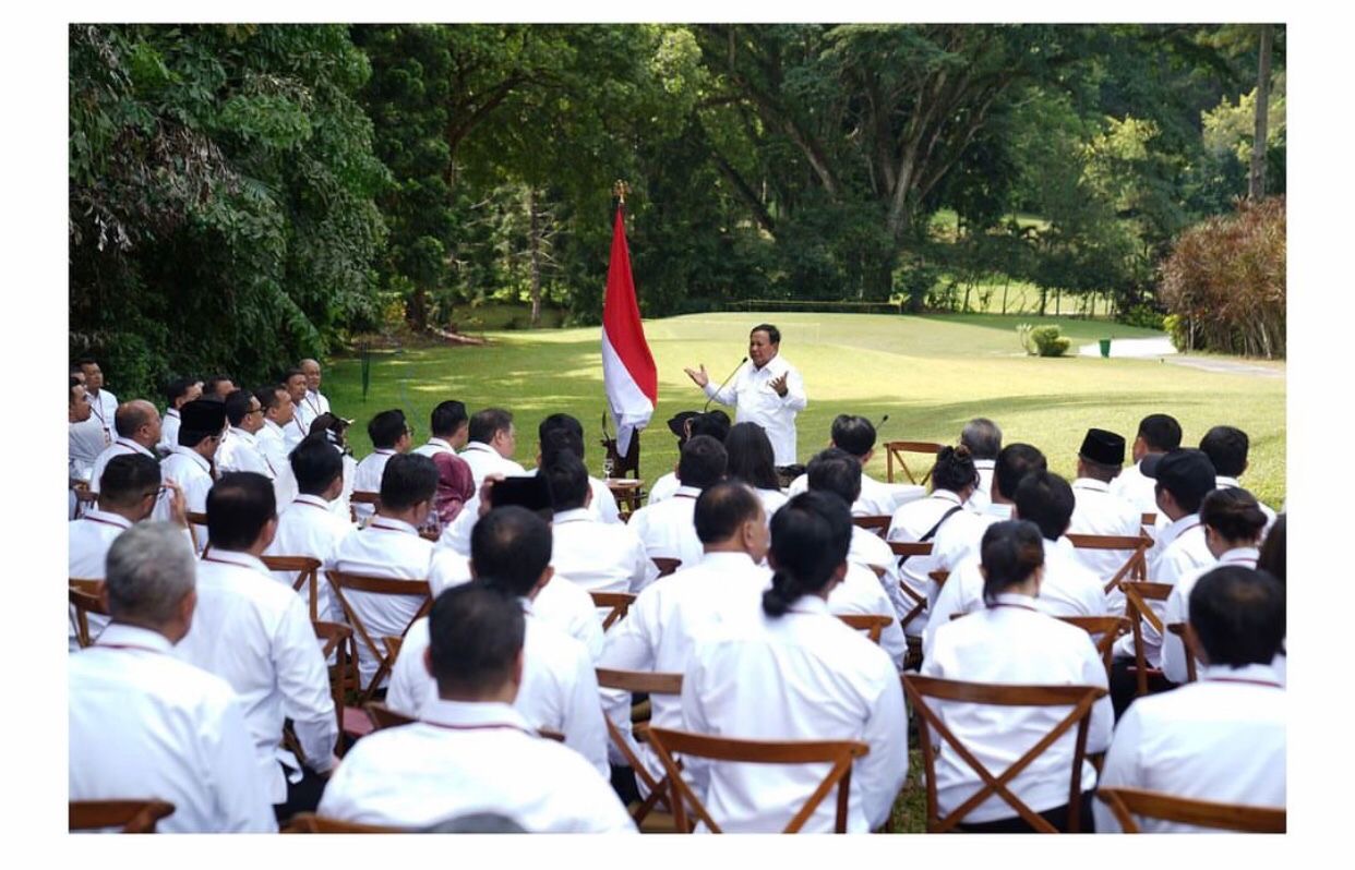 Bagi Prabowo yang berlatar belakang militer, menilai metode tersebut paling cocok untuk menumbuhkan kebersamaan dalam kabinetnya.