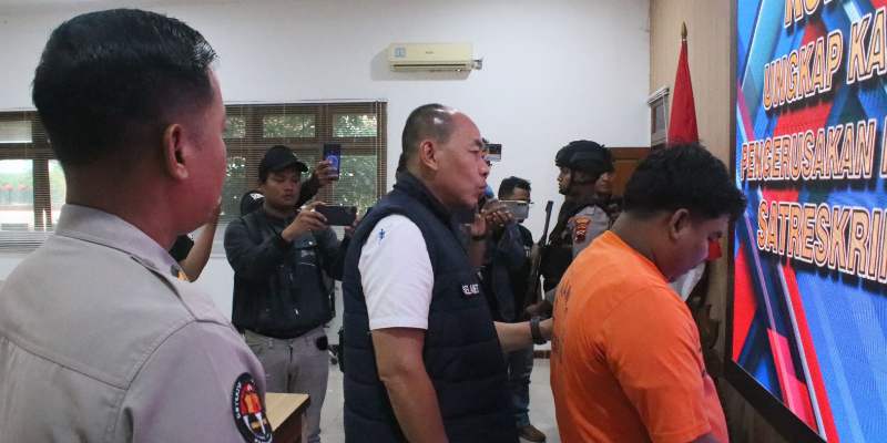 “Kedua tersangka dijerat Pasal 170 ayat 1 KUHP tentang tindak pidana bersama-sama melakukan kekerasan terhadap barang di muka umum. Ancaman hukumannya maksimal lima tahun enam bulan penjara,” jelas AKP Selamet.