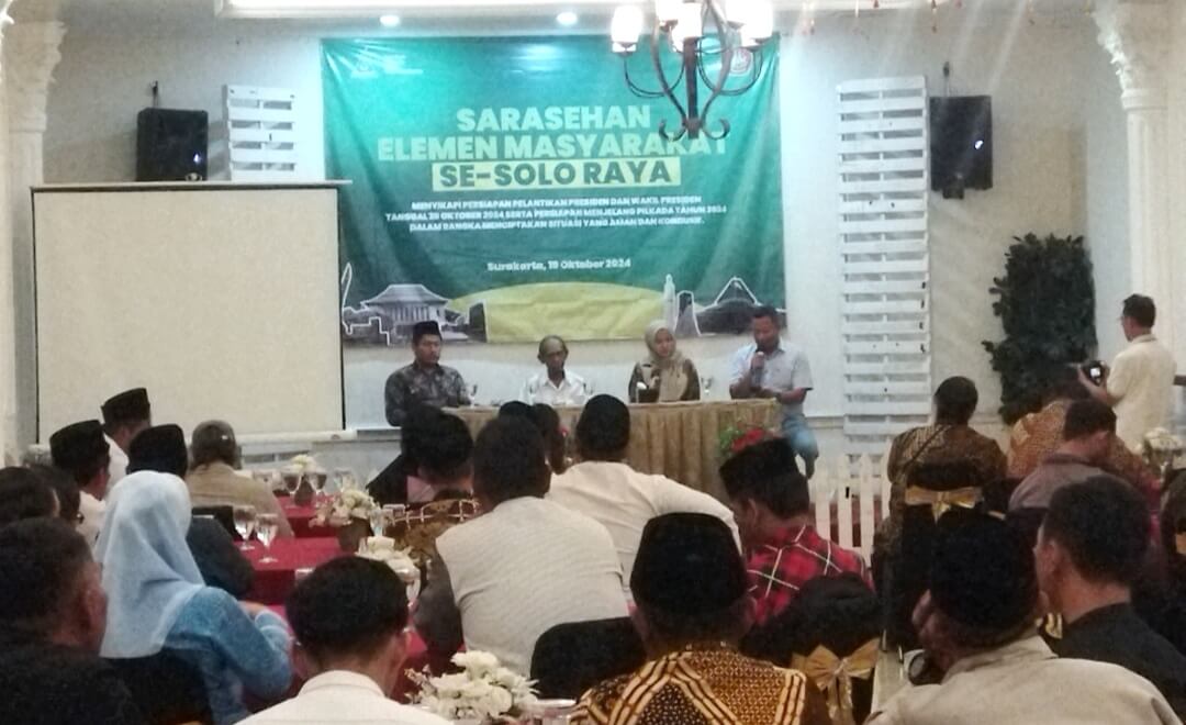 Dengan kegiatan sarasehan ini, seluruh elemen masyarakat se Solo Raya menyerukan, dalam rangka pelantikan Presiden dan Wakil Presiden periode 2024-2029 dan Pilkada Serentak 2024, menciptakan kondisi yang aman dan kondusif.(sun)