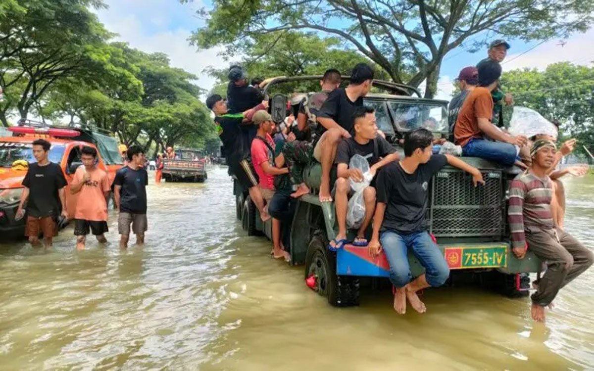 “Mereka yang sudah mengungsi di tanggul kali, kita evakuasi ke posko menggunakan truk TNI. Karena untuk menjaga keselamatan mereka,” ujar Dandim.